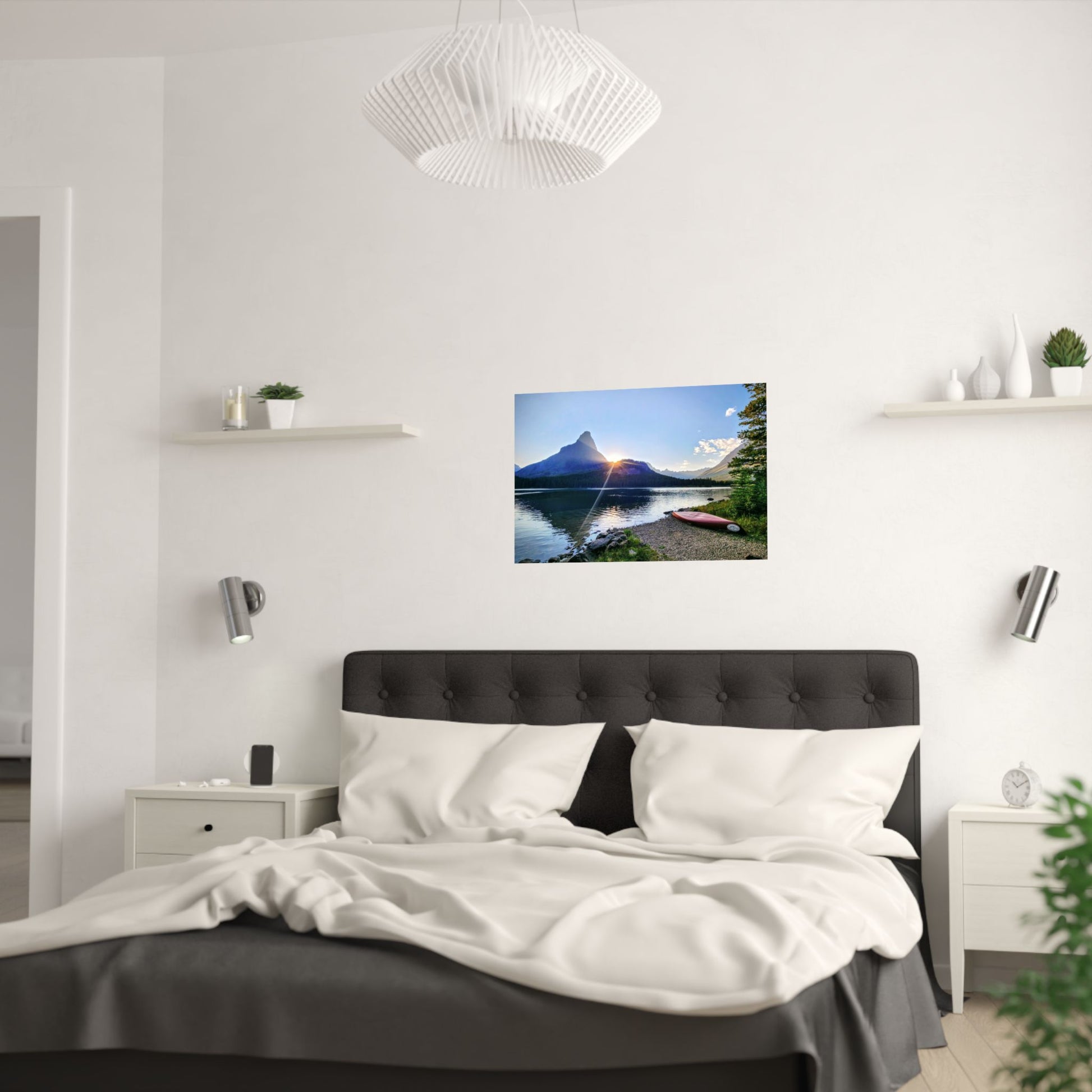 Sunset over Many Glacier in Glacier National Park, MT - Scenic Nature Satin Poster, Mountain Landscape Art Print, Home Decor, Inspirational Wall Art, Perfect Gift for Nature Lovers